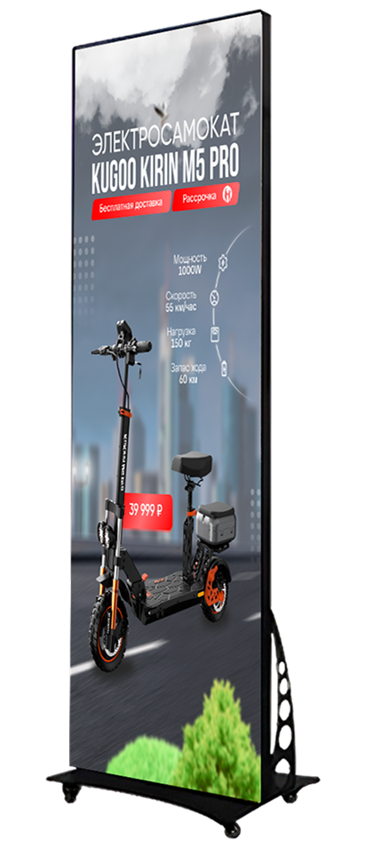 Этот двусторонний LED-постер удваивает ваш охват аудитории: яркие, кристально четкие экраны с обеих сторон притягивают взгляды даже в самом оживленном месте чтобы вы продавали больше, быстрее и ярче.